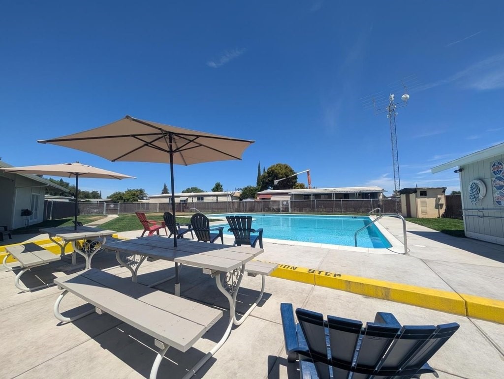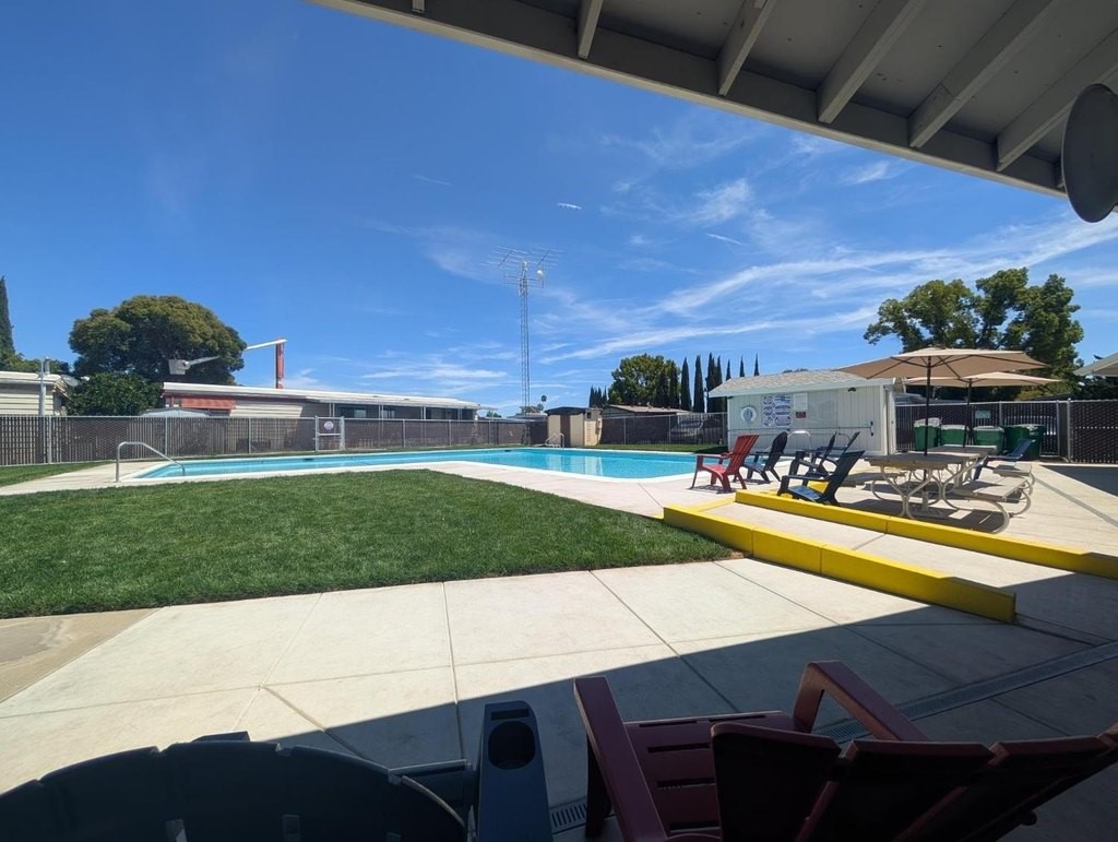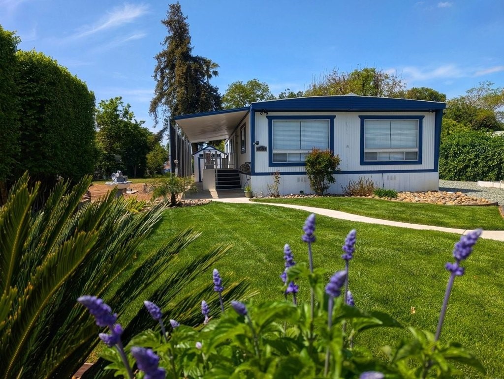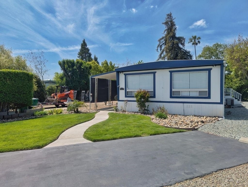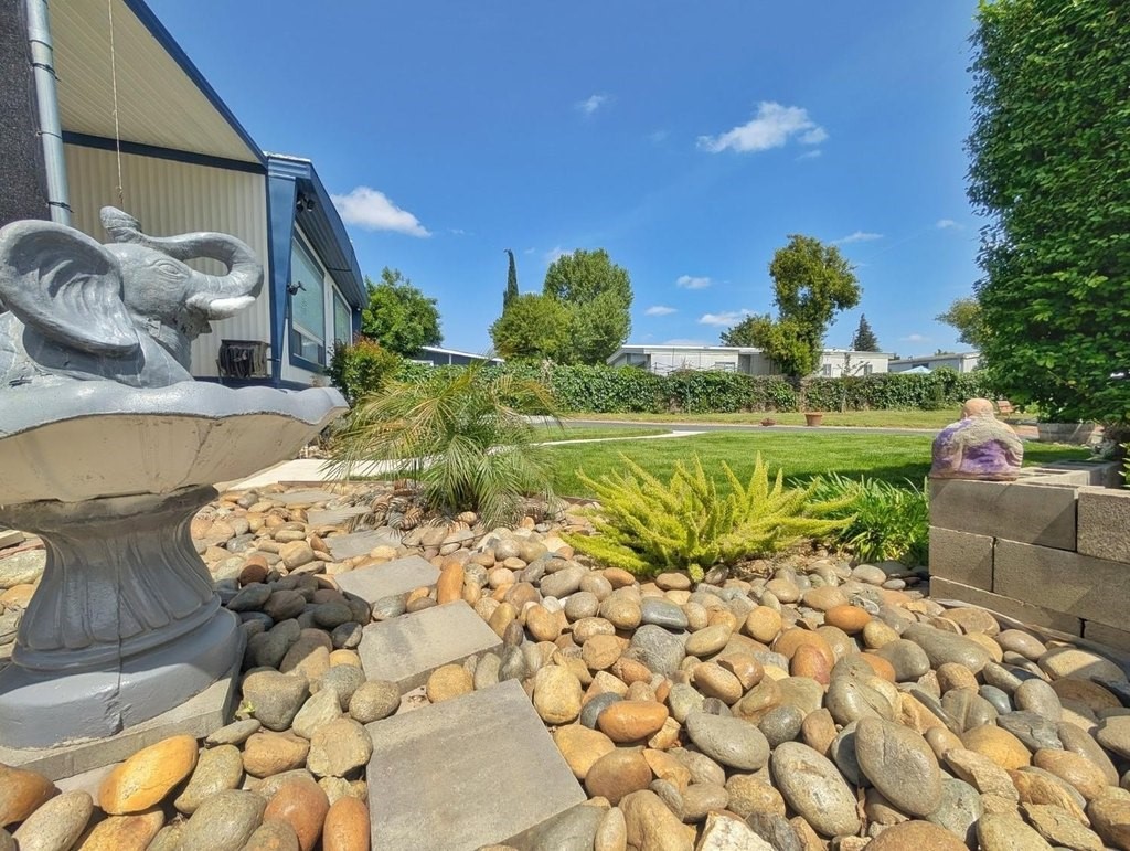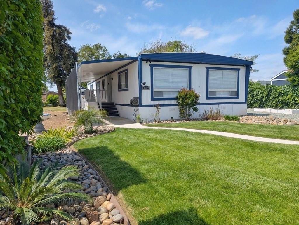 Well-maintained home in Stockton Verde, an All-Age Park with thoughtful upgrades inside and out. Key updates include a freshly painted interior, new HVAC with returns, 40-gallon water heater and Roof coated/sealed in 2024. The kitchen features a custom shelved pantry, wainscoting backsplash, granite-look laminate counters, stainless steel appliances (refrigerator to convey) and both a breakfast nook and formal dining area with a built-in hutch. Tasteful laminate flooring, faux wood blinds, lighted outlet coverings and new ceiling fans run throughout. The living room includes a remote-operated fan and a faux wood accent wall. The spacious laundry room offers upper/lower cabinetry and room for storage or a freezer. The primary suite includes built-in drawers, crown molding, and mirrored closet doors; the bath features a quartz-style fiberglass shower and auto-lighting. A Jack-and-Jill full guest bathroom connects to one of the guest rooms. Outdoors- Enjoy a covered patio with a canvas sunshade, raised garden bed, and a beautifully landscaped yard with a water fountain feature. Backs to one of the Community's common areas with mature landscaping and Walnut Trees. Community features include a pool (under remodel) & a recreational game room. See for yourself and Love where you Live!