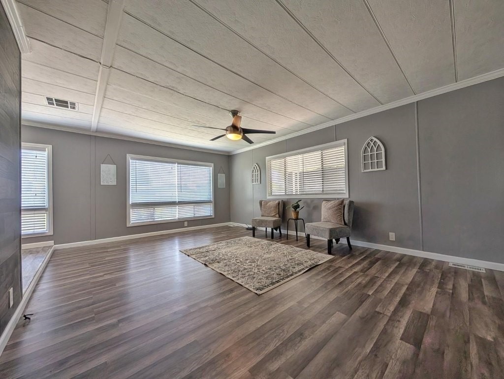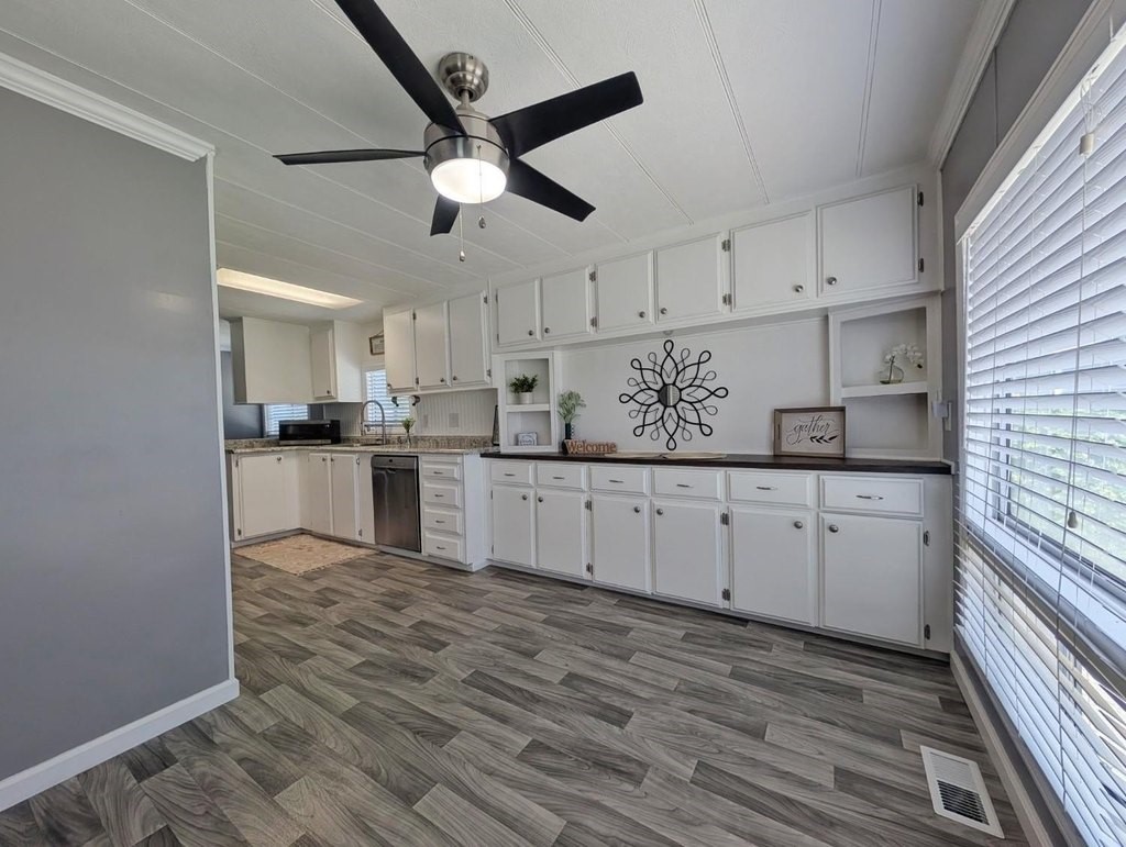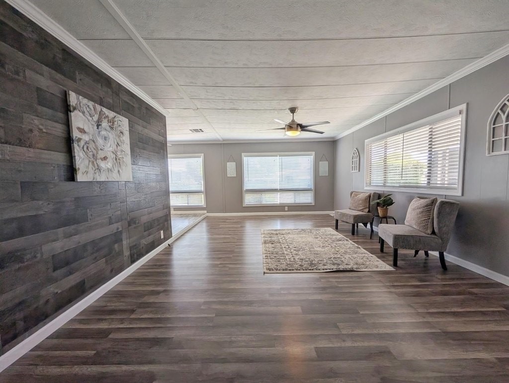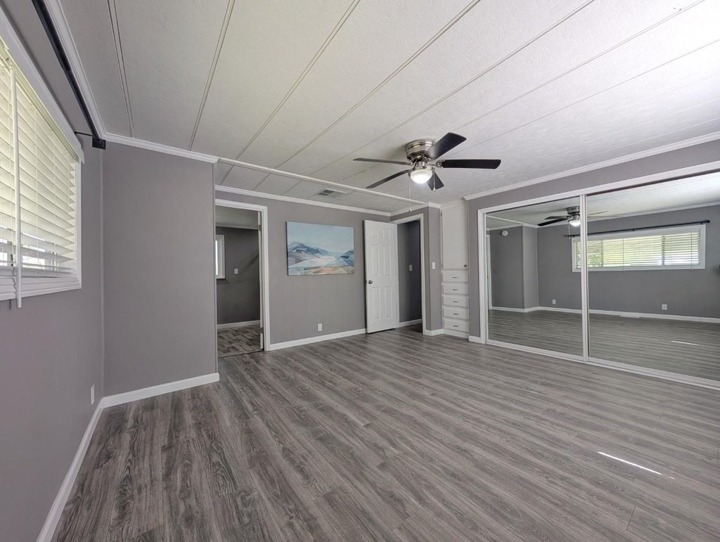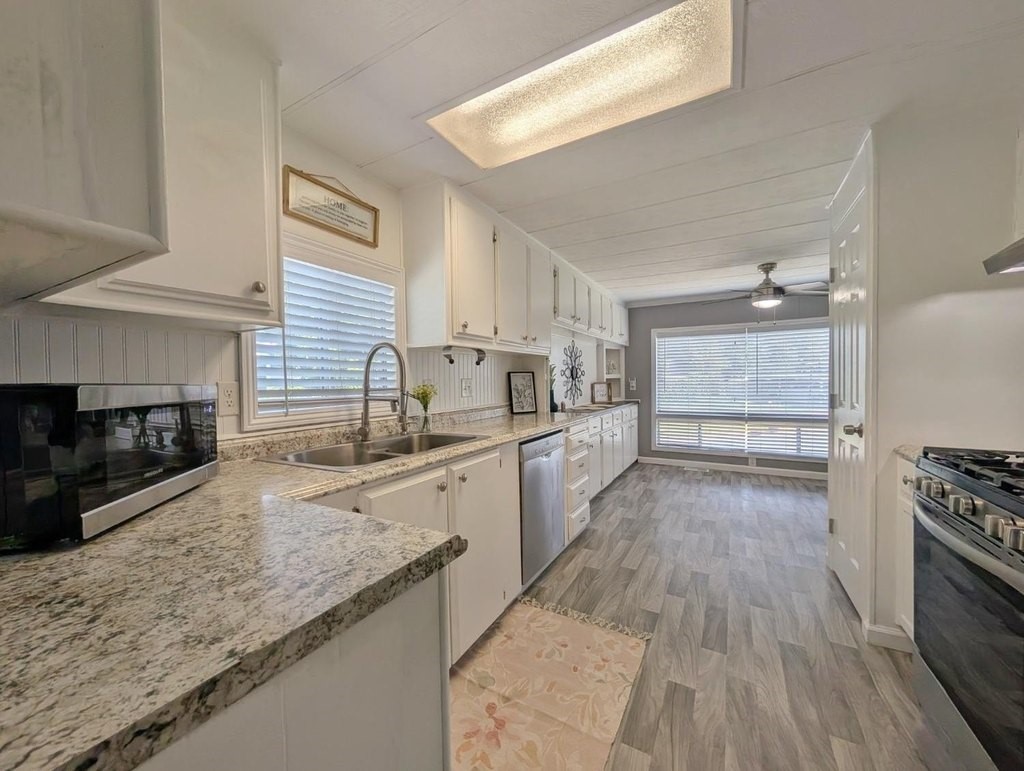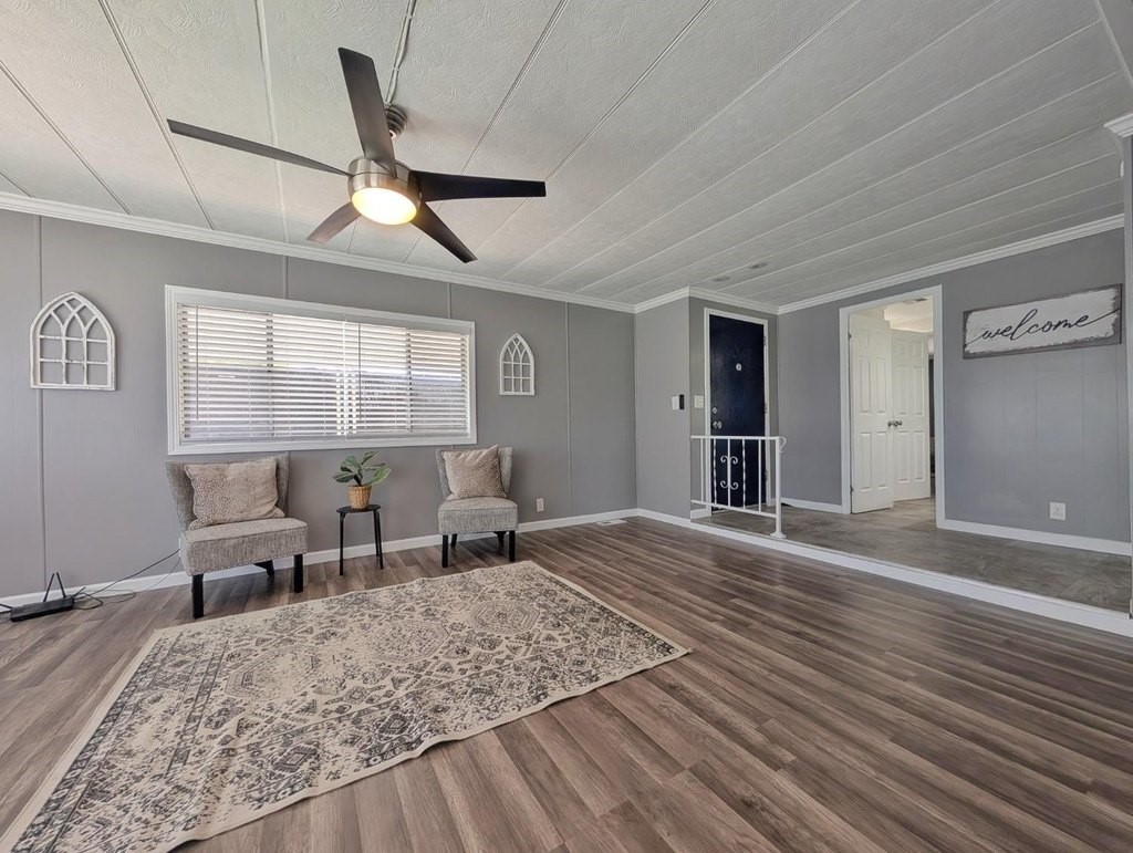 Well-maintained home in Stockton Verde, an All-Age Park with thoughtful upgrades inside and out. Key updates include a freshly painted interior, new HVAC with returns, 40-gallon water heater and Roof coated/sealed in 2024. The kitchen features a custom shelved pantry, wainscoting backsplash, granite-look laminate counters, stainless steel appliances (refrigerator to convey) and both a breakfast nook and formal dining area with a built-in hutch. Tasteful laminate flooring, faux wood blinds, lighted outlet coverings and new ceiling fans run throughout. The living room includes a remote-operated fan and a faux wood accent wall. The spacious laundry room offers upper/lower cabinetry and room for storage or a freezer. The primary suite includes built-in drawers, crown molding, and mirrored closet doors; the bath features a quartz-style fiberglass shower and auto-lighting. A Jack-and-Jill full guest bathroom connects to one of the guest rooms. Outdoors- Enjoy a covered patio with a canvas sunshade, raised garden bed, and a beautifully landscaped yard with a water fountain feature. Backs to one of the Community's common areas with mature landscaping and Walnut Trees. Community features include a pool (under remodel) & a recreational game room. See for yourself and Love where you Live!
