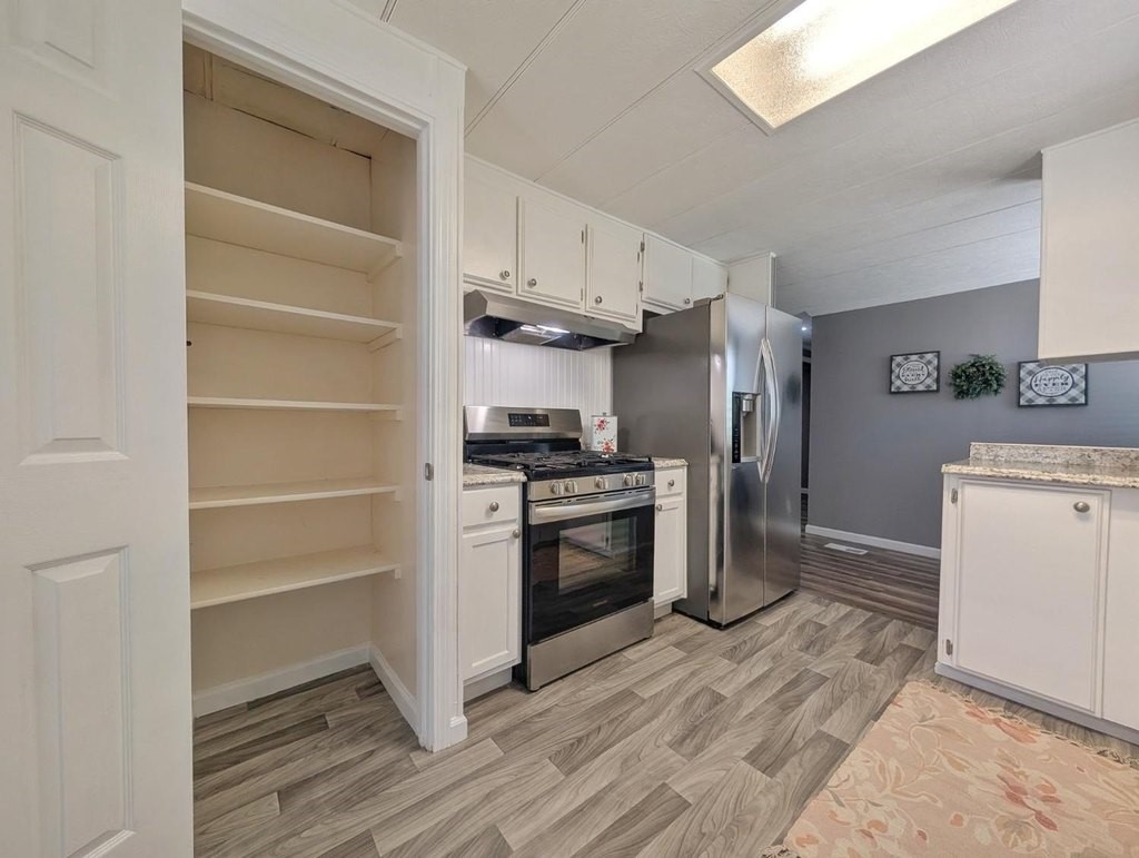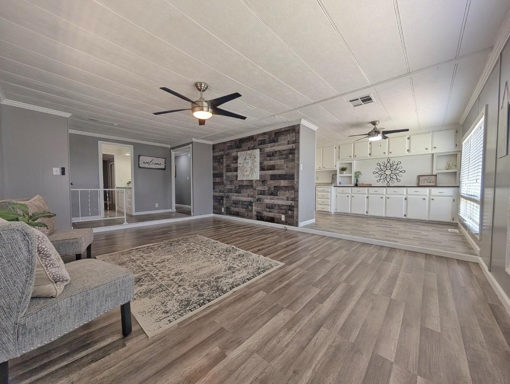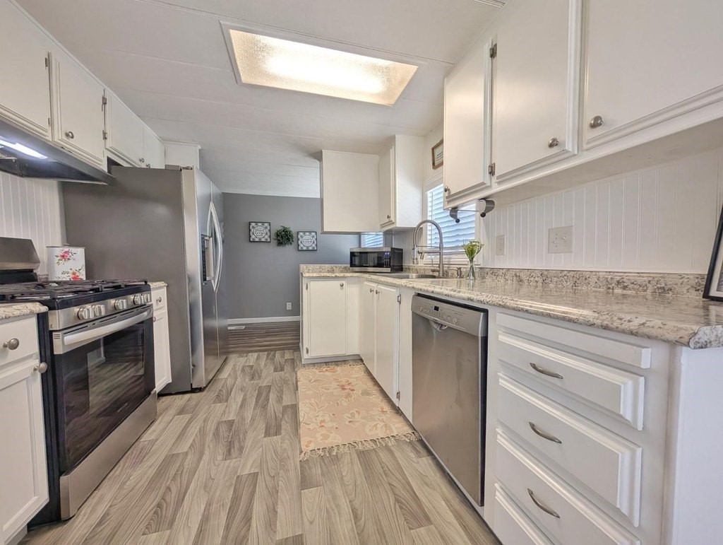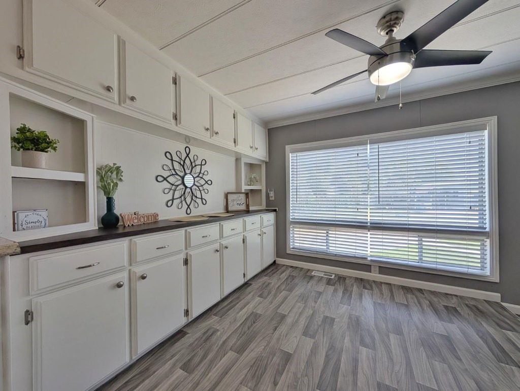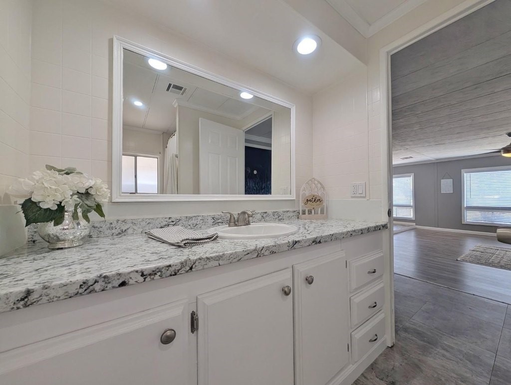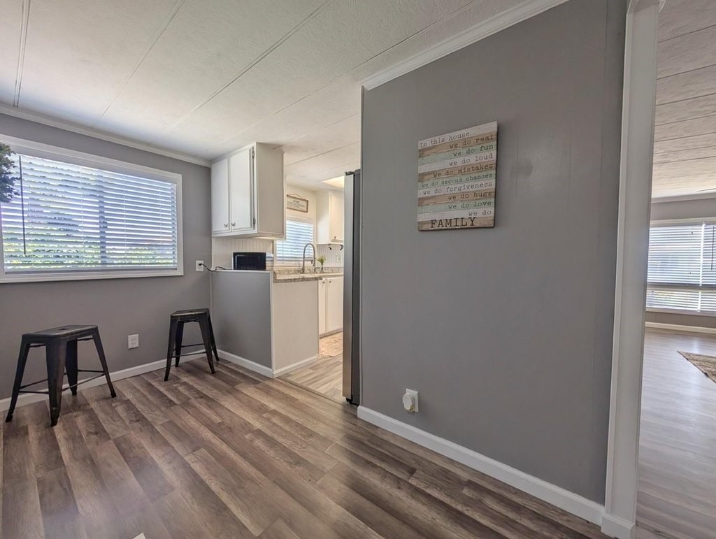Well-maintained home in Stockton Verde, an All-Age Park with thoughtful upgrades inside and out. Key updates include a freshly painted interior, new HVAC with returns, 40-gallon water heater and Roof coated/sealed in 2024. The kitchen features a custom shelved pantry, wainscoting backsplash, granite-look laminate counters, stainless steel appliances (refrigerator to convey) and both a breakfast nook and formal dining area with a built-in hutch. Tasteful laminate flooring, faux wood blinds, lighted outlet coverings and new ceiling fans run throughout. The living room includes a remote-operated fan and a faux wood accent wall. The spacious laundry room offers upper/lower cabinetry and room for storage or a freezer. The primary suite includes built-in drawers, crown molding, and mirrored closet doors; the bath features a quartz-style fiberglass shower and auto-lighting. A Jack-and-Jill full guest bathroom connects to one of the guest rooms. Outdoors- Enjoy a covered patio with a canvas sunshade, raised garden bed, and a beautifully landscaped yard with a water fountain feature. Backs to one of the Community's common areas with mature landscaping and Walnut Trees. Community features include a pool (under remodel) & a recreational game room. See for yourself and Love where you Live!